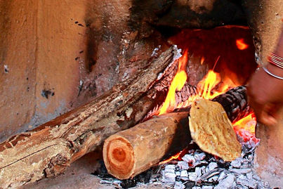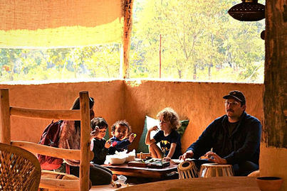 Organic vegetables & herbs from our organic garden or from nearby villages ; Freshly roasted & grounded whole Spices ; Cooked in iron / clay vessels over wood-fired mud-stoves – A truly authentic Indian flavor.