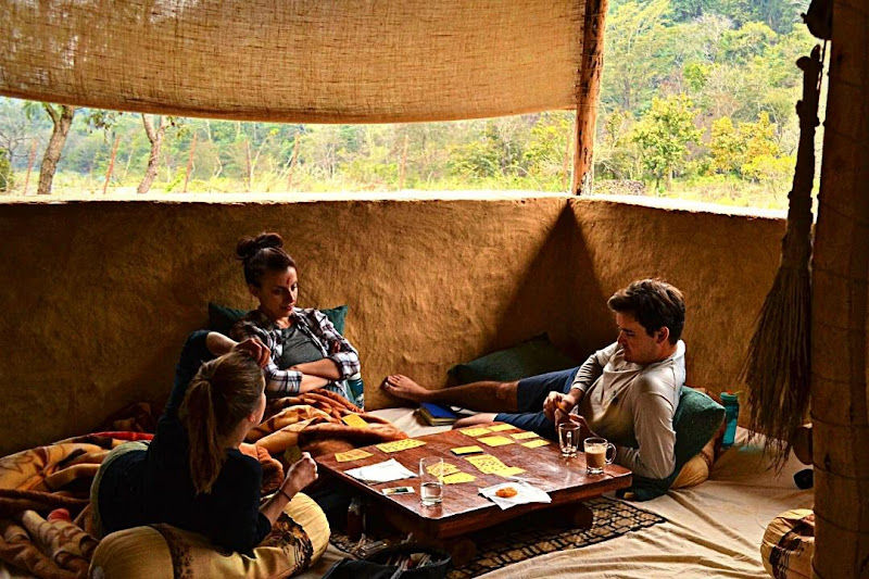 Days have a lot to indulge in – Play a game of Badminton or Read a Book ; Throw a Dart or Paint a Stone ; Shoot an Arrow or Play the Guitar ; Strike the Carrom or Plunge in the pools ; Hike a forest Trail or Bath in the Stream ; Feed the Cow or watch the Birds play & sing ; Laze in a Hammock or just Share conversations